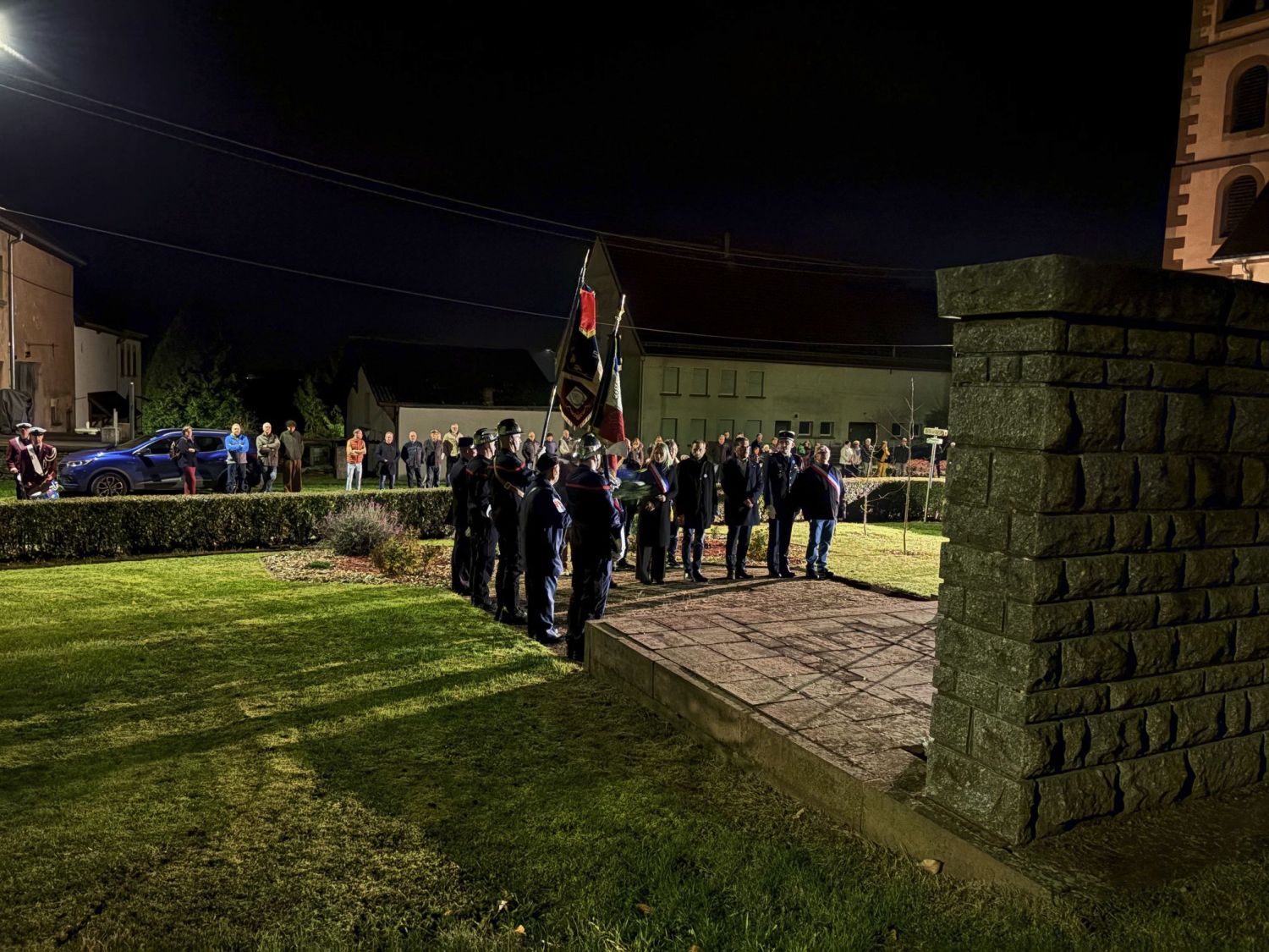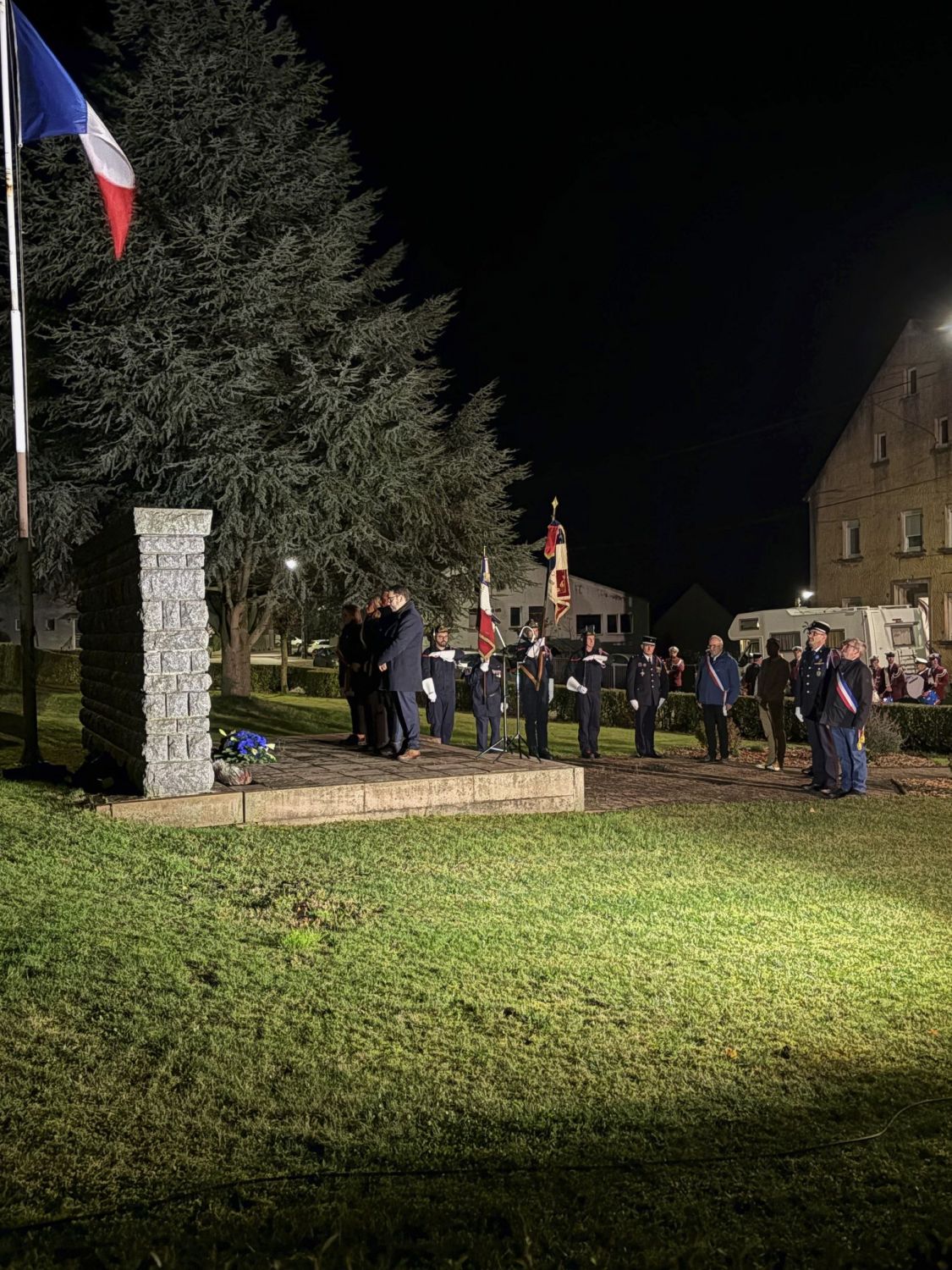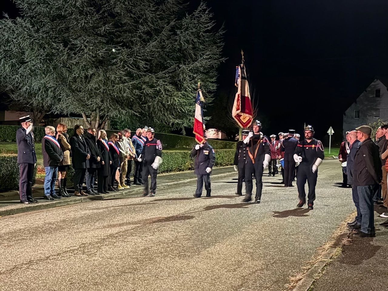 La commémoration a débuté par une messe à 18h30, célébrée en l’église du village, avant que les habitants, les élus et les associations locales ne se rassemblent devant le monument aux morts pour le dépôt de gerbe et le moment de recueillement, suivi de la lecture par la maire du message officiel de Madame Catherine Vautrin, ministre des Armées et des Anciens combattants, et de Madame Alice Rufo, ministre déléguée.