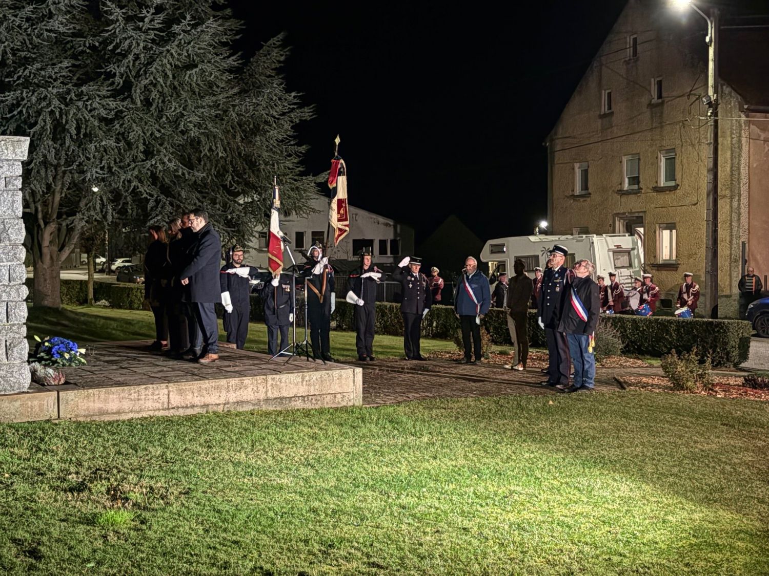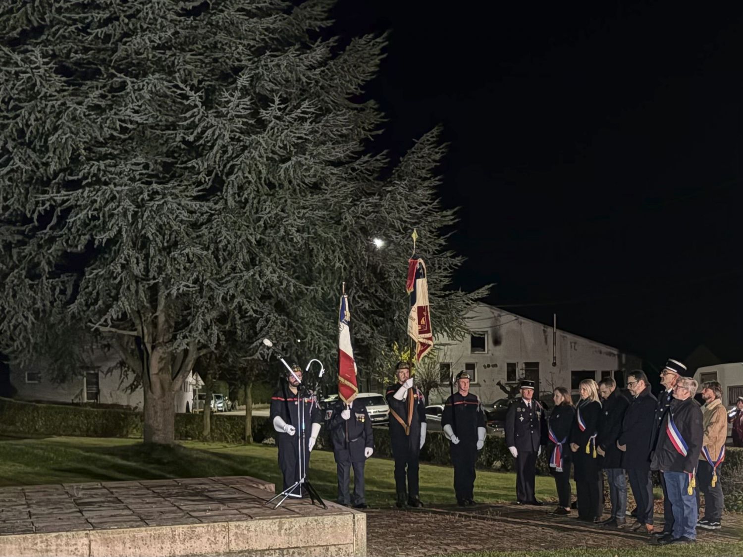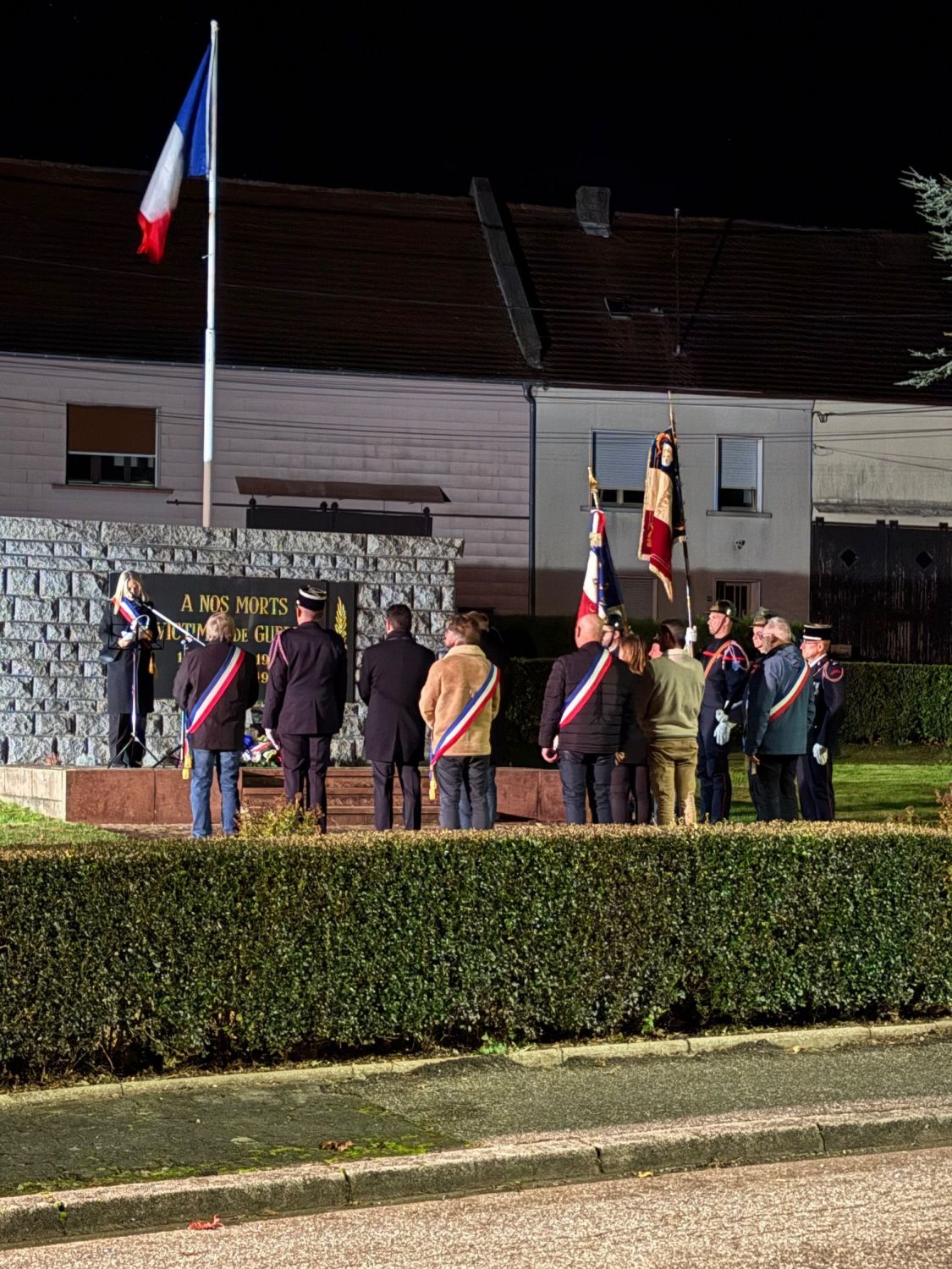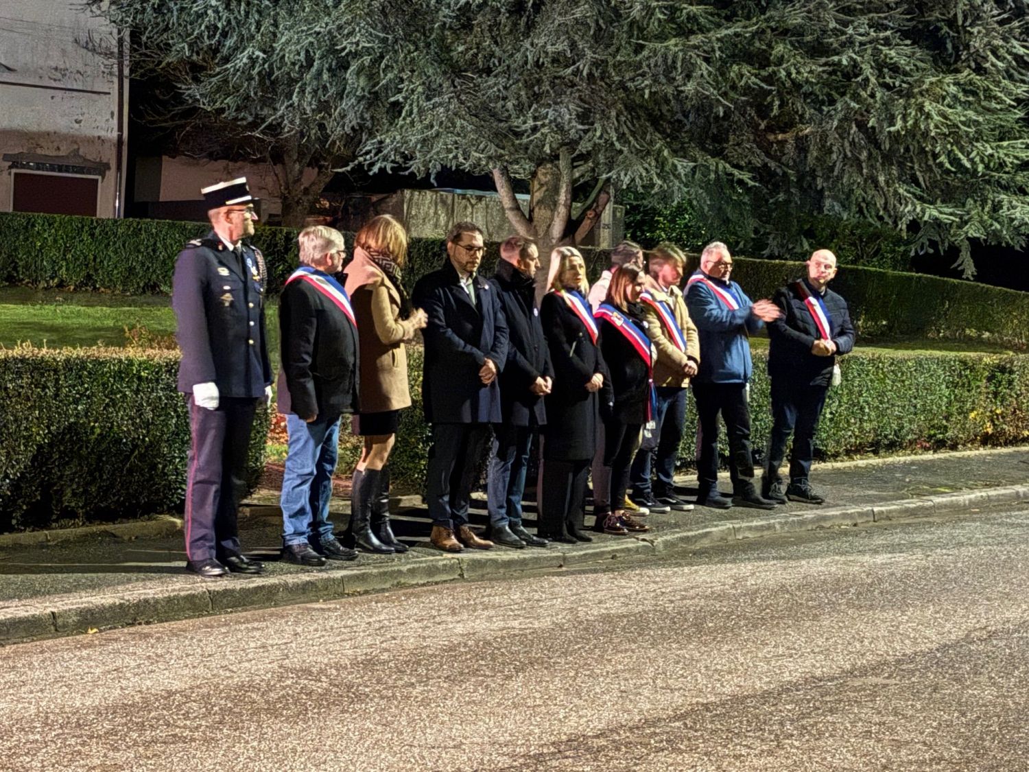 La commémoration a débuté par une messe à 18h30, célébrée en l’église du village, avant que les habitants, les élus et les associations locales ne se rassemblent devant le monument aux morts pour le dépôt de gerbe et le moment de recueillement, suivi de la lecture par la maire du message officiel de Madame Catherine Vautrin, ministre des Armées et des Anciens combattants, et de Madame Alice Rufo, ministre déléguée.