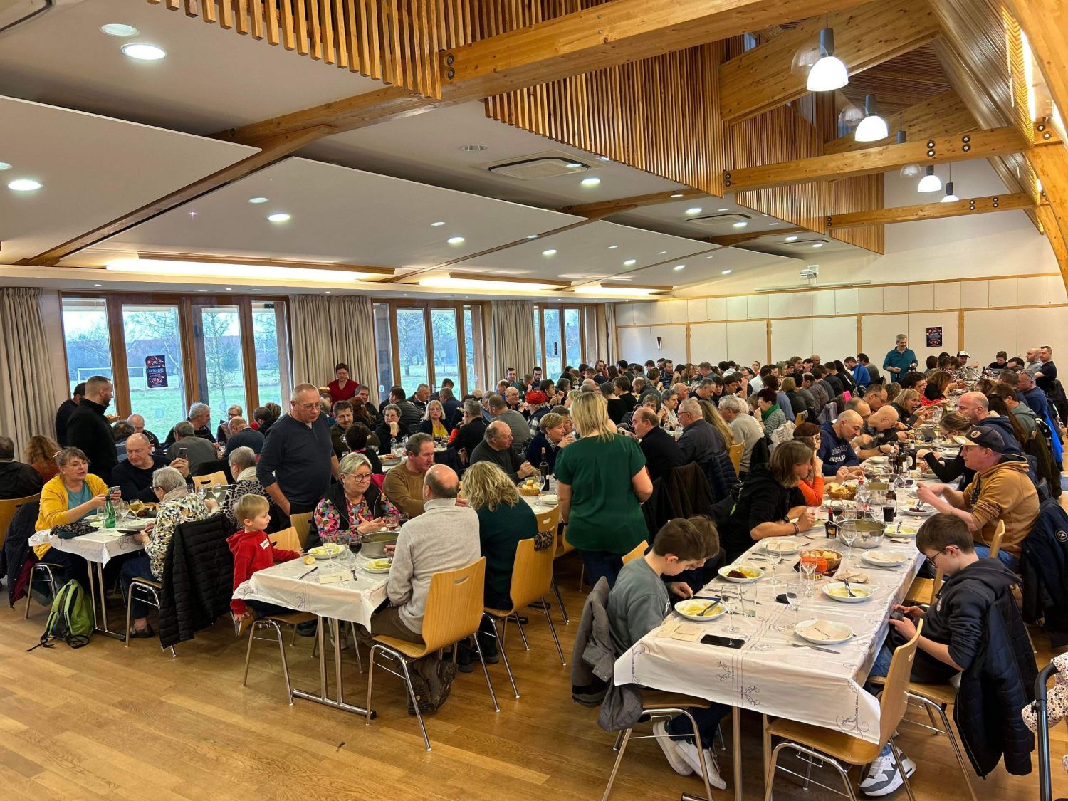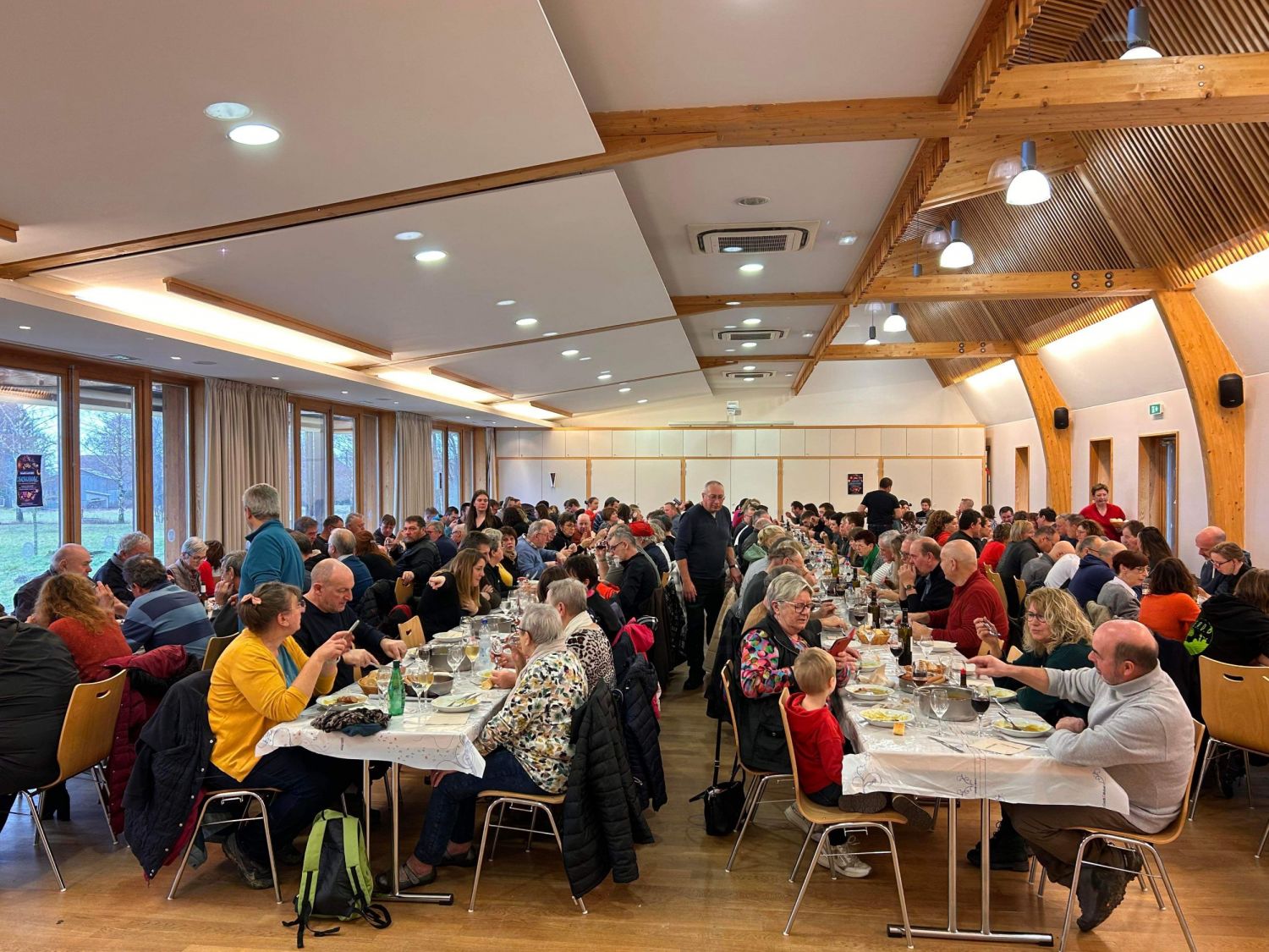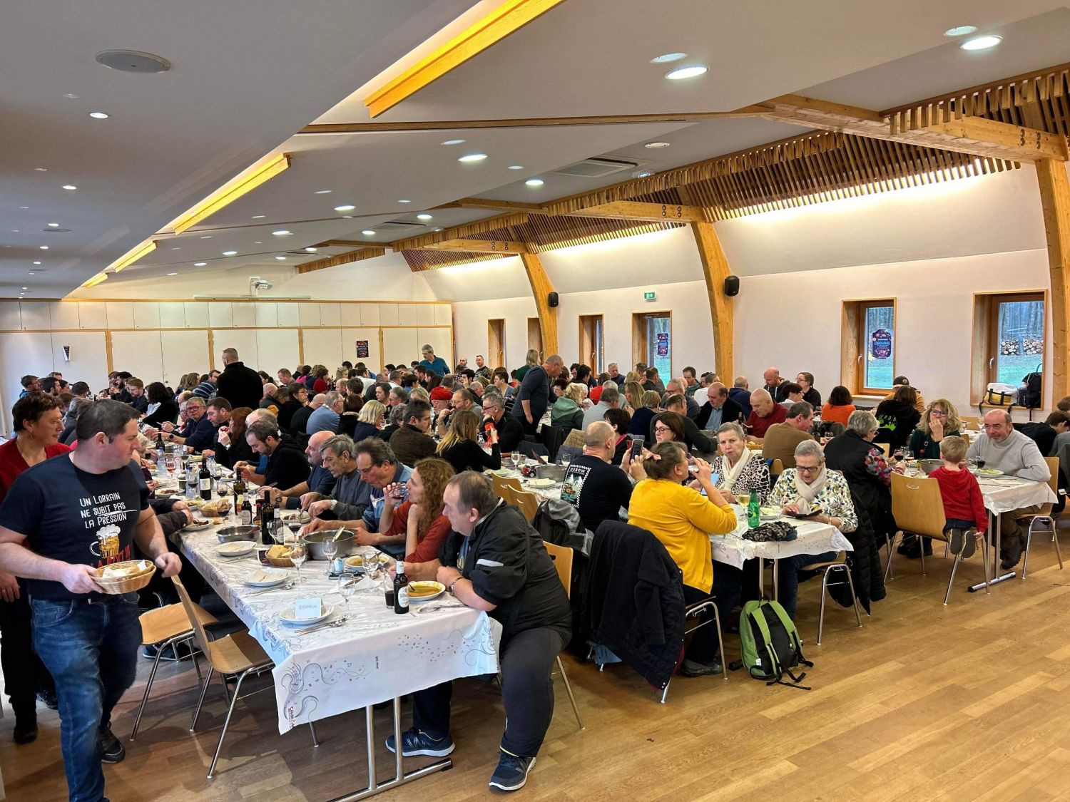Pour le déjeuner, c’est pas moins de 190 convives, marcheurs ou non, qui se sont retrouvés à la salle communale pour partager l’excellente soupe aux poids.